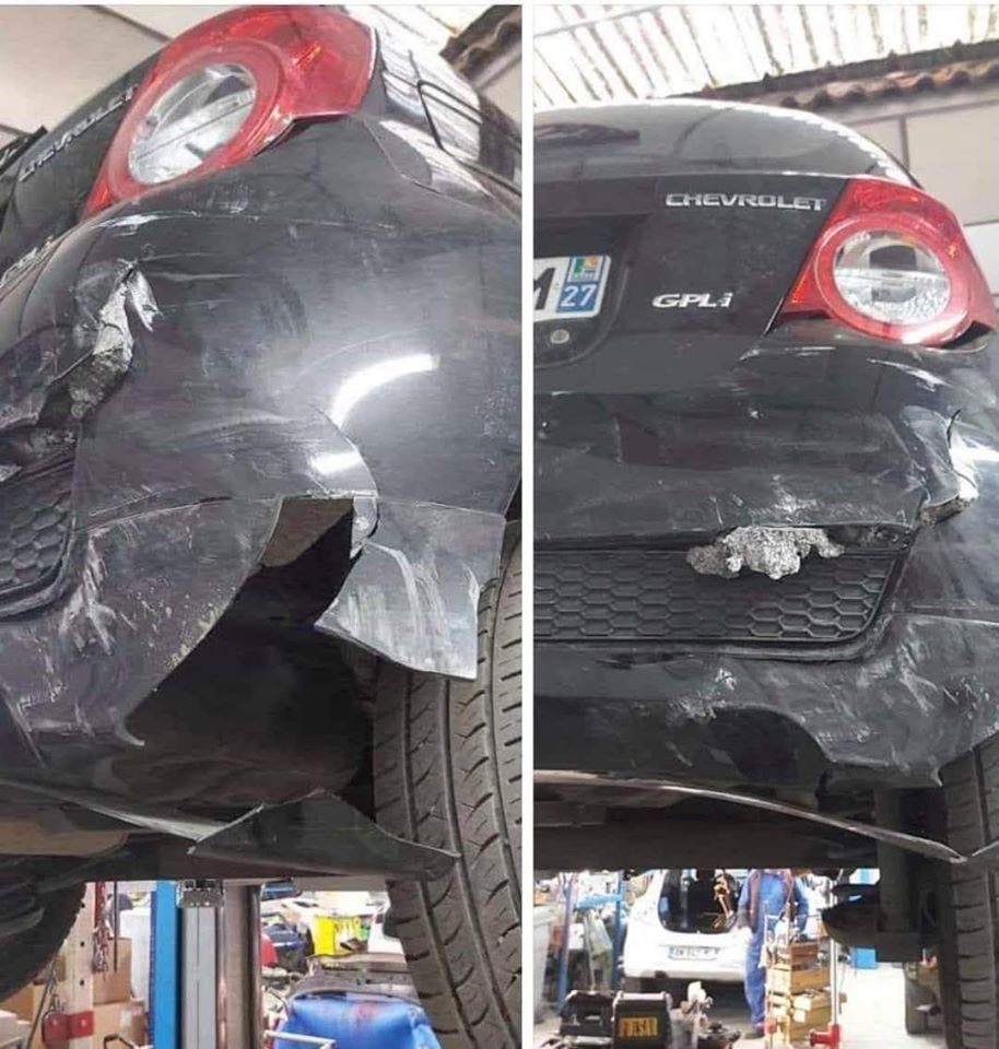 Choc de l’arrière du véhicule (photos ci dessus)