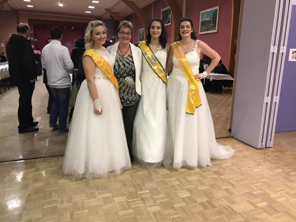 Élection miss muguet à Fere en Tardenois, la présidente et les lauréates 2019 accueillent le public.
