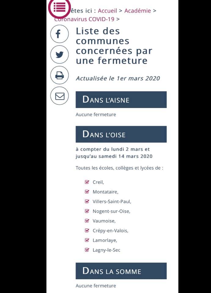 CORONAVIRUS] Mise à jour des communes et de la date de fermeture des établissements du 2 mars jusqu'au 14 mars 2020