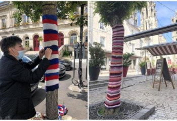 Voilà 15 jours Josette Stibler se faisait un plaisir d'installer, les manteaux tricotés cet hiver pour quelques arbres du centre-ville dont : la place de l'Hôtel de ville ou encore la place aux herbes...
