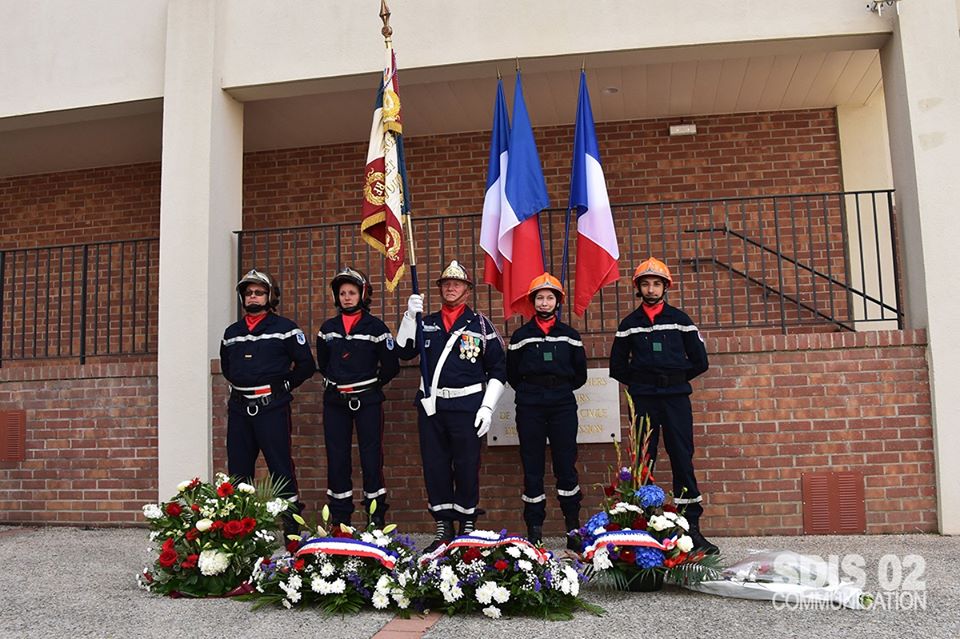 Risque sanitaire oblige, la cérémonie d'hommage aux personnels de la Sécurité civile décédés en service s'est tenue en comité restreint, en présence du Monsieur le Préfet de l'Aisne à la Direction départementale, Ville de LAON "page officielle"