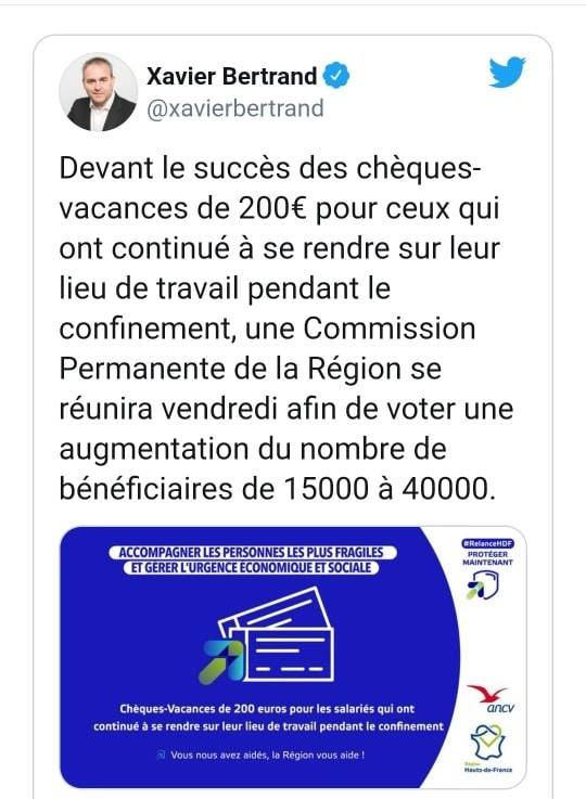 Chèques vacances à 200 euros ...  augmentation du nombre de bénéficiaires